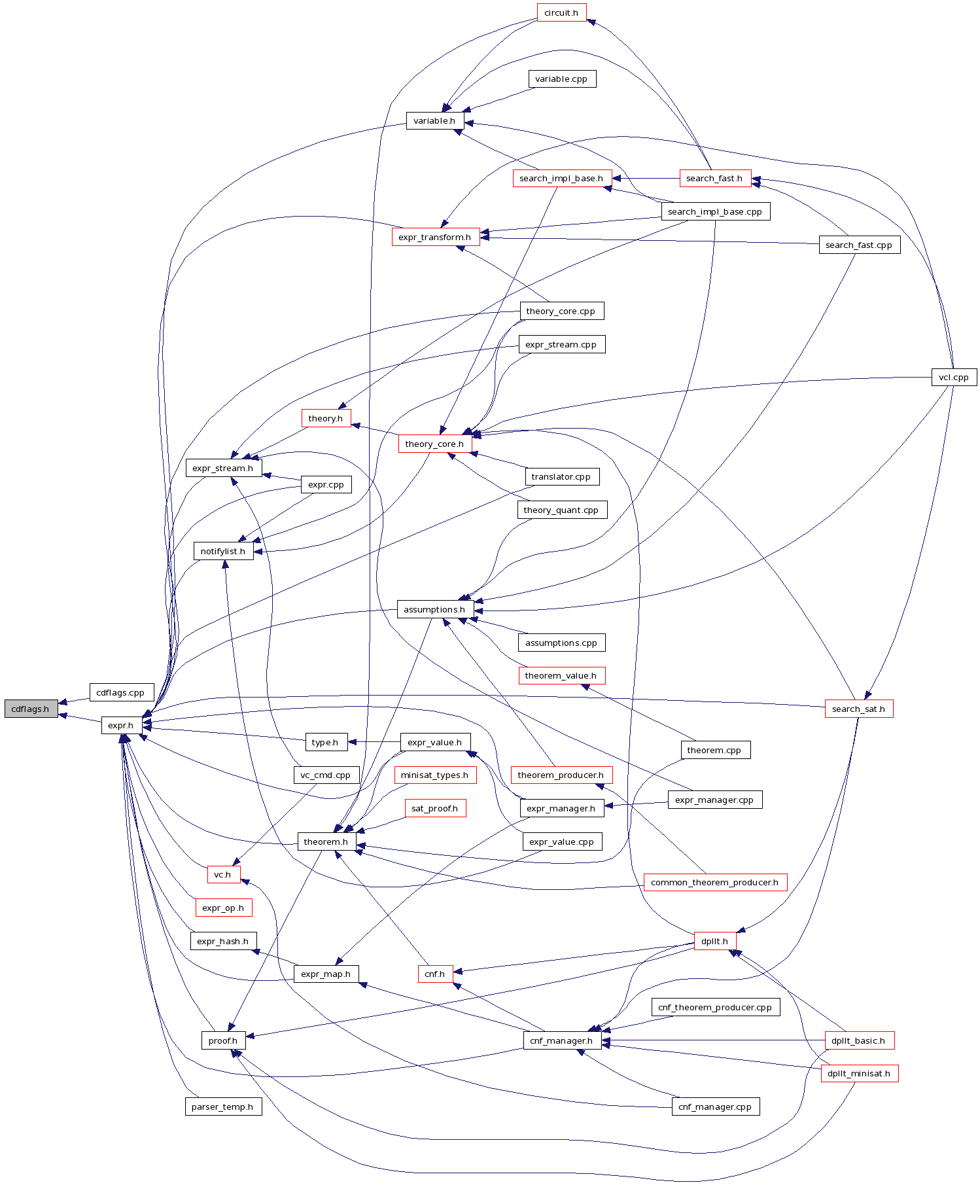 Include dependency graph for cdflags.h: