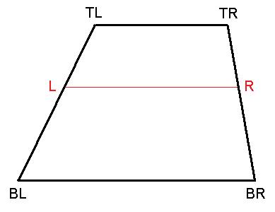 Di = lerp(t, Ai, Ci)Now we have everything we need to form the two trapezoids (show on the right in the diagram above). The top trapezoid has a degenerate top edge - it consists only of the point A, and a bottom edge that goes between D and B. The bottom trapezoid has a top edge that goes between D and B, a degenerate top edge - it consists only of the point C.